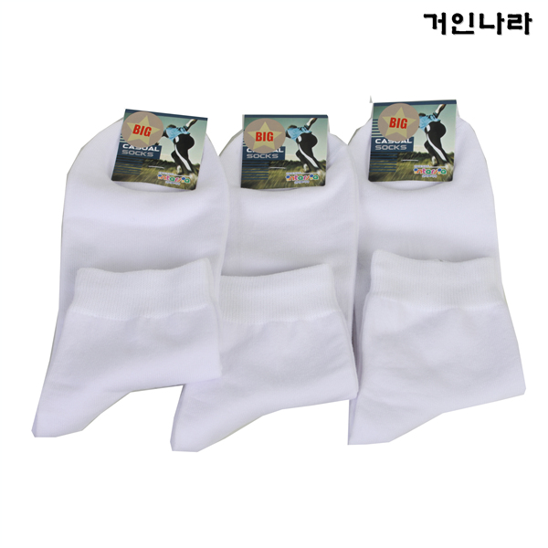 빅사이즈 중목 양말 3족세트3304 – 화이트