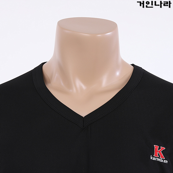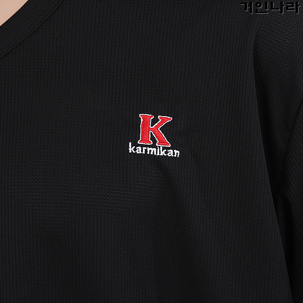 KMK 기능성 K 자수 와플 브이넥 반팔티2315 – 블랙