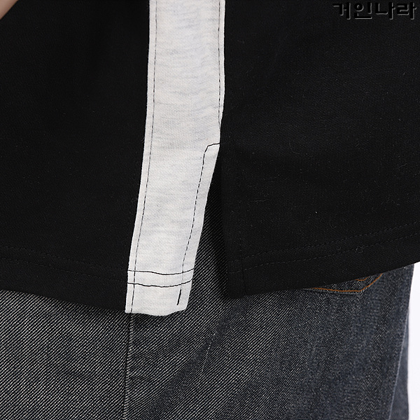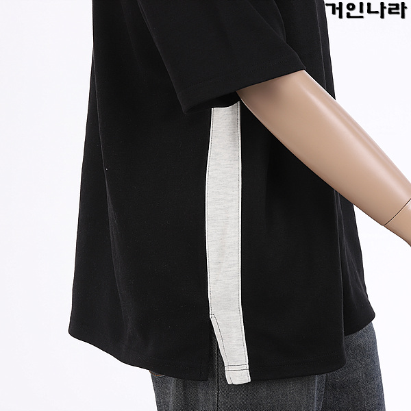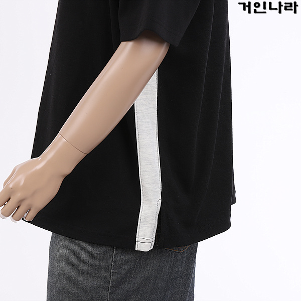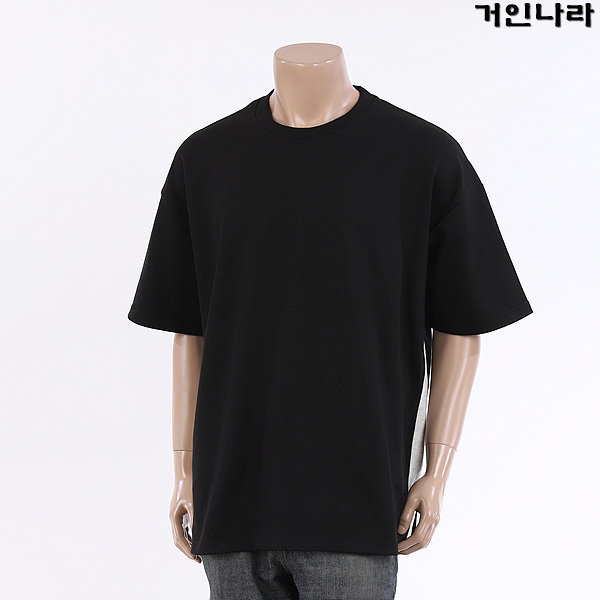 ML 오버핏 특양면 옆라인 배색 라운드 반팔티3364 – 블랙